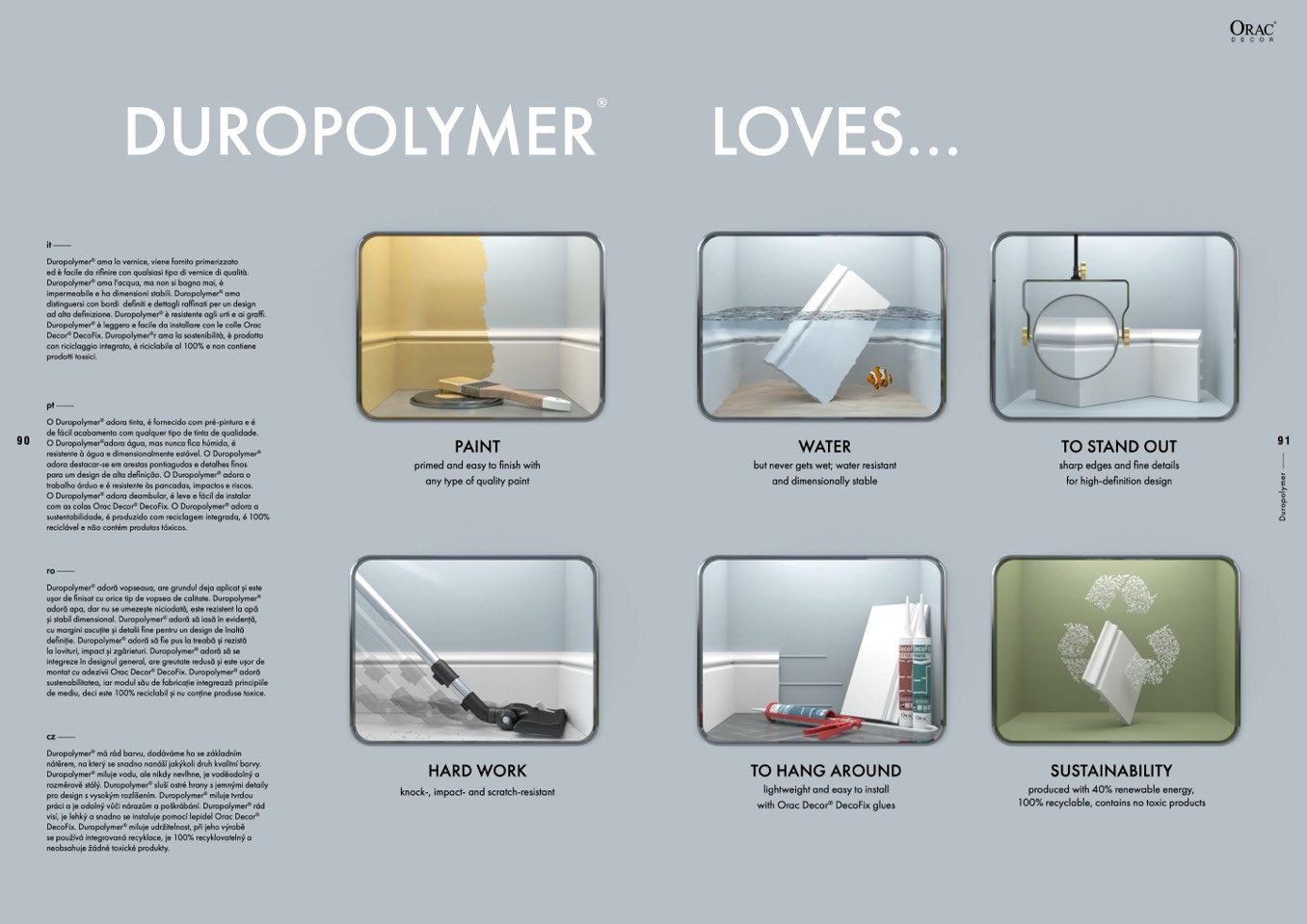 resistente à água e dimensionalmente estável. O Duropolymer