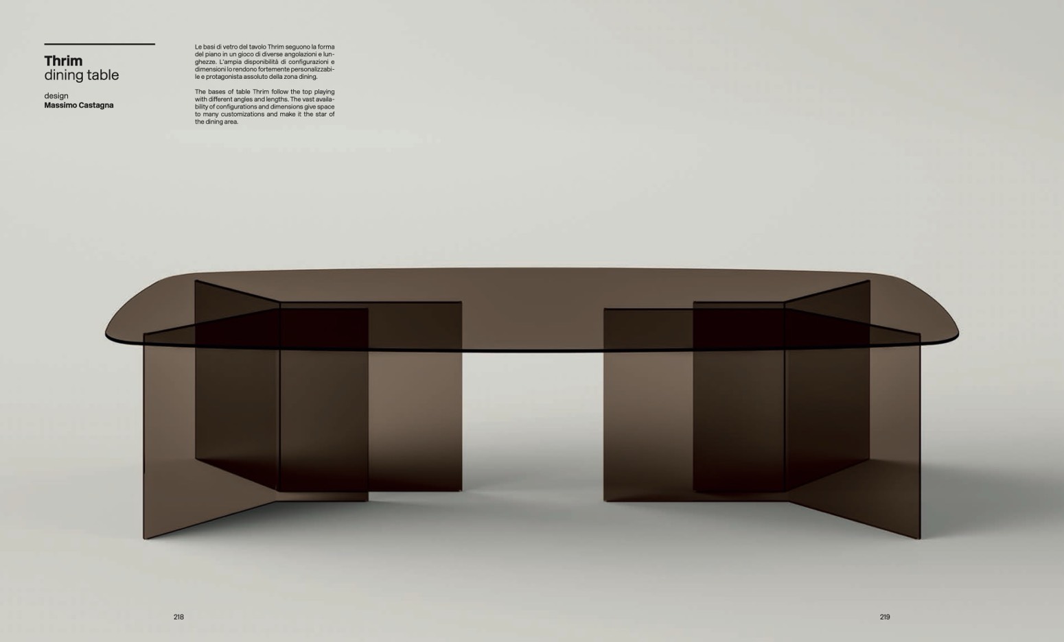 Le basi di vetro del tavolo Thrim seguono la form
