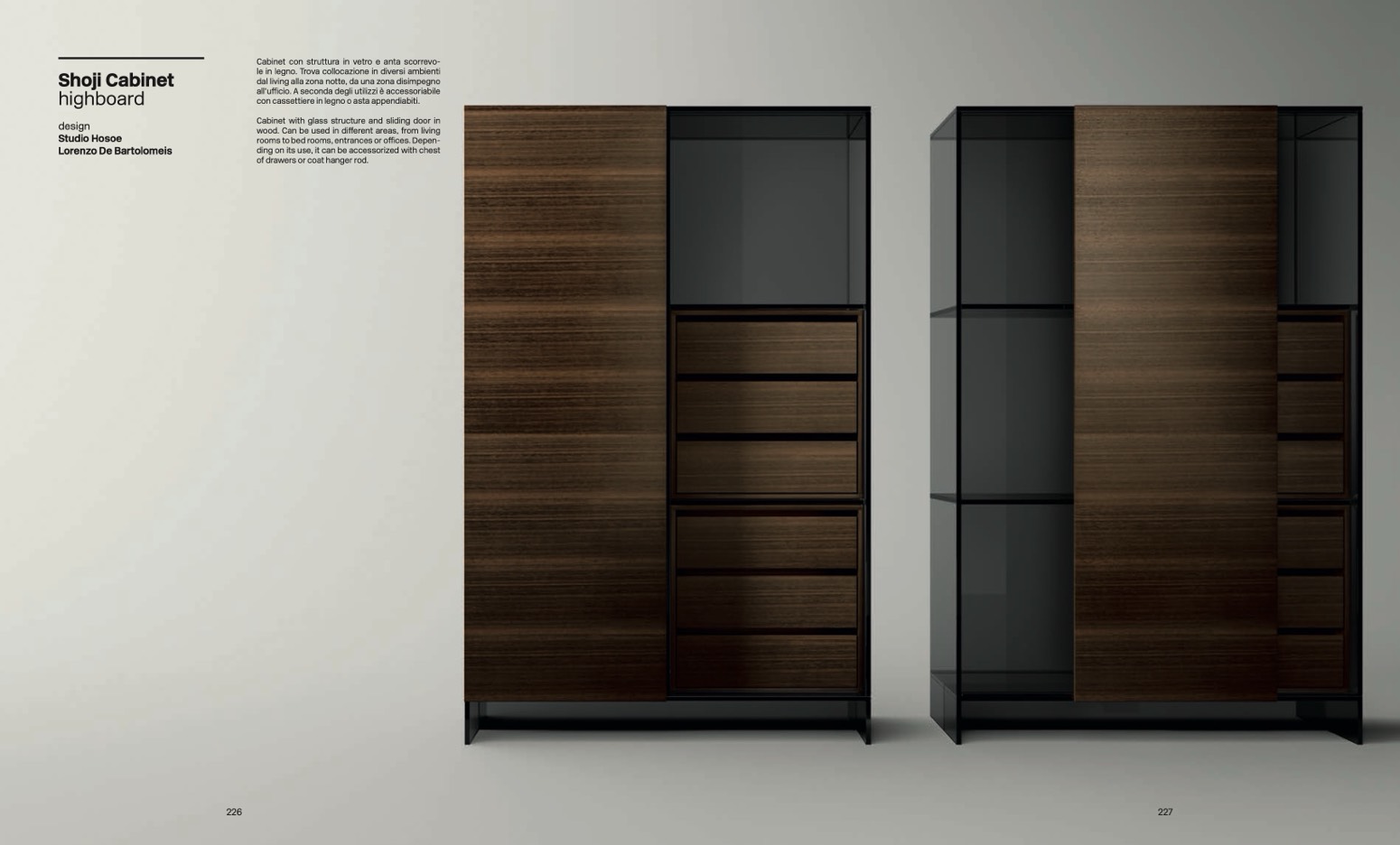 Cabinet con struttura in vetro e anta scorrevo