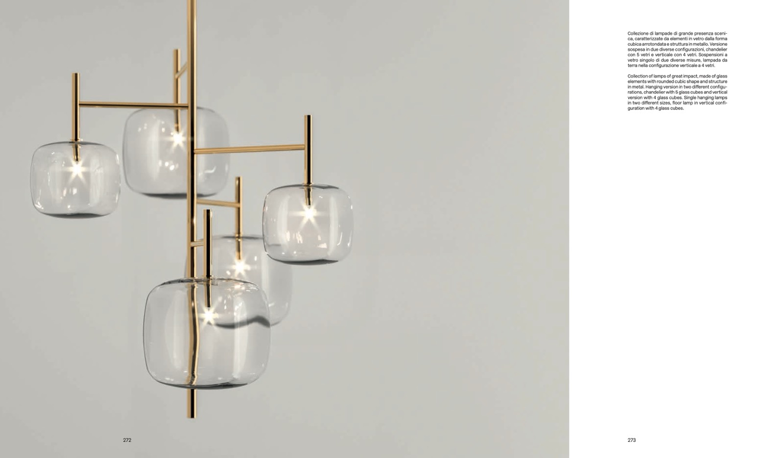 rations, chandelier with 5 glass cubes and vertical