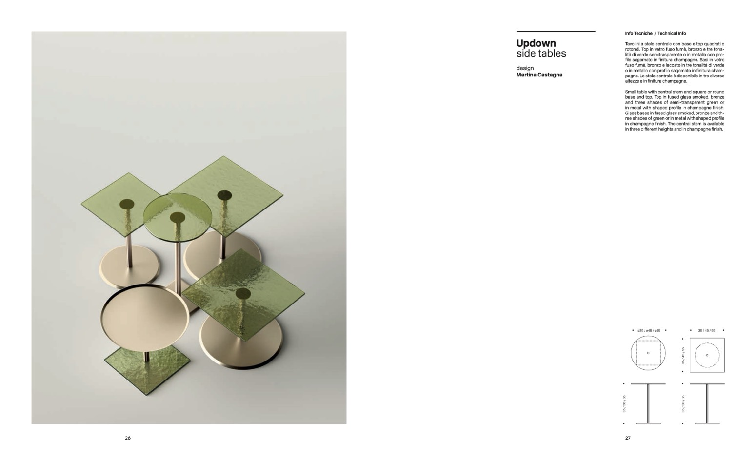 in three different heights and in champagne finish.