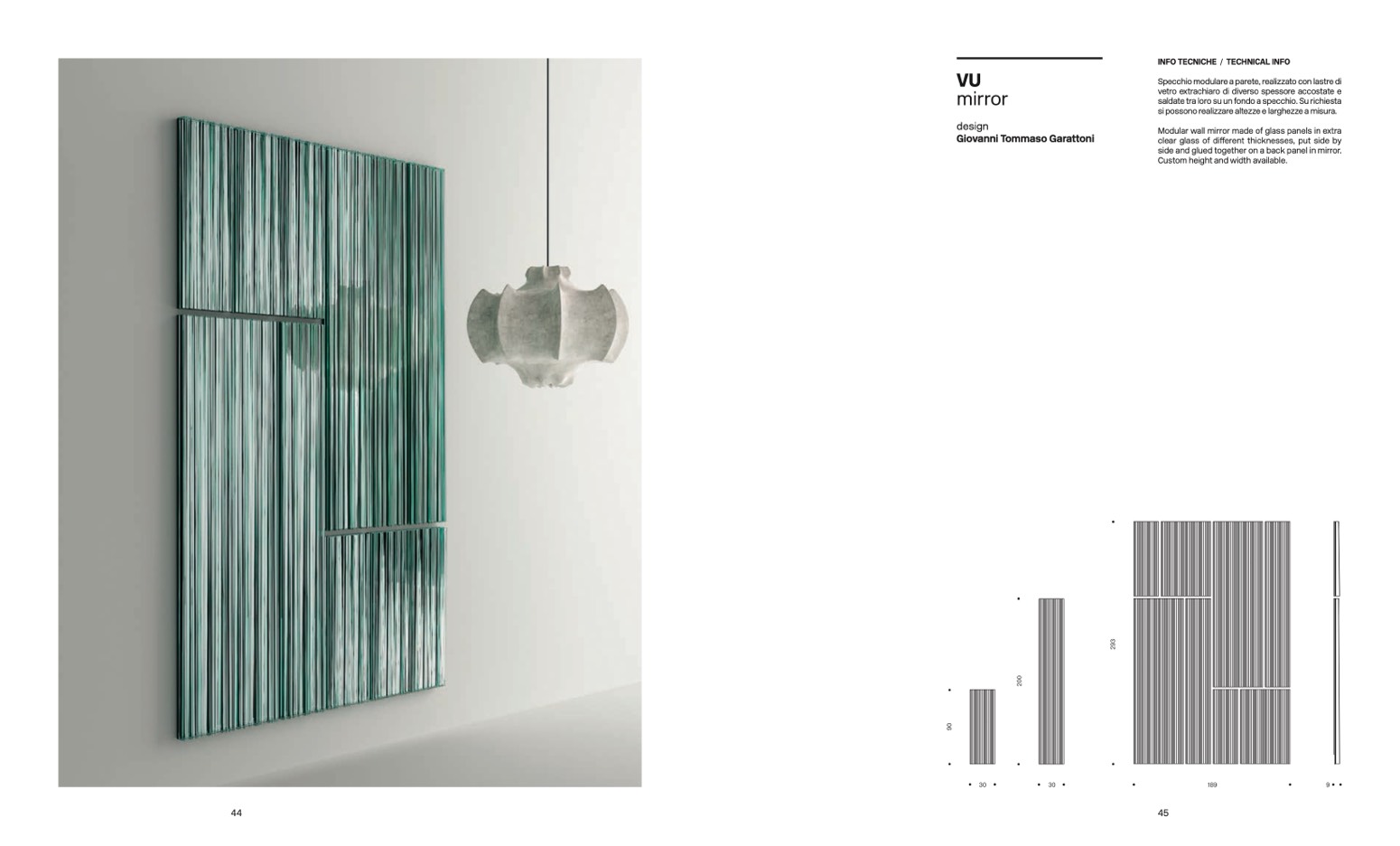 Modular wall mirror made of glass panels in extr