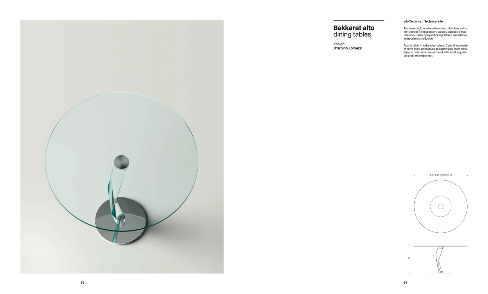 Tavolo rotondo in vetro extra chiaro. Gamba centra-