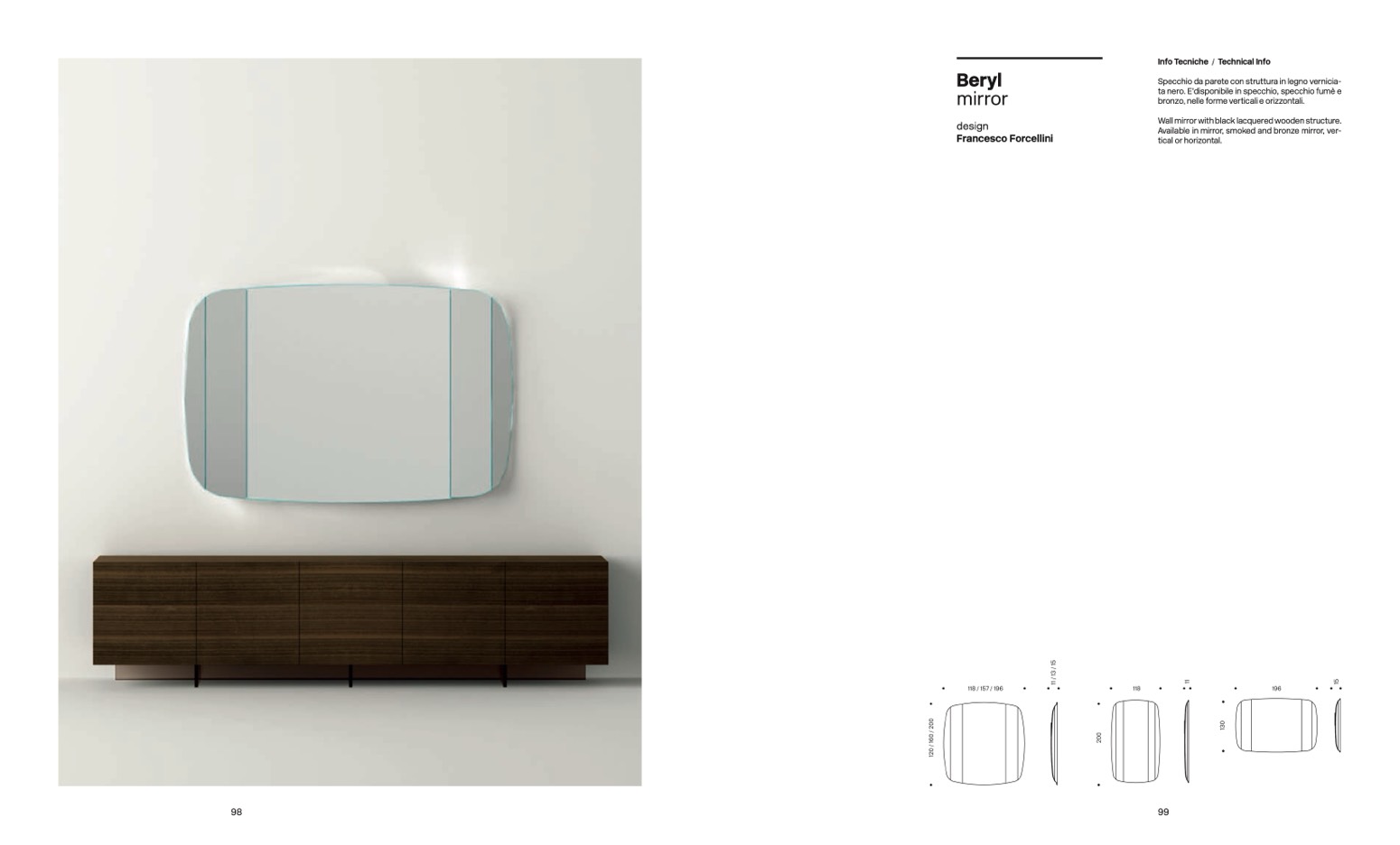Available in mirror, smoked and bronze mirror, ver