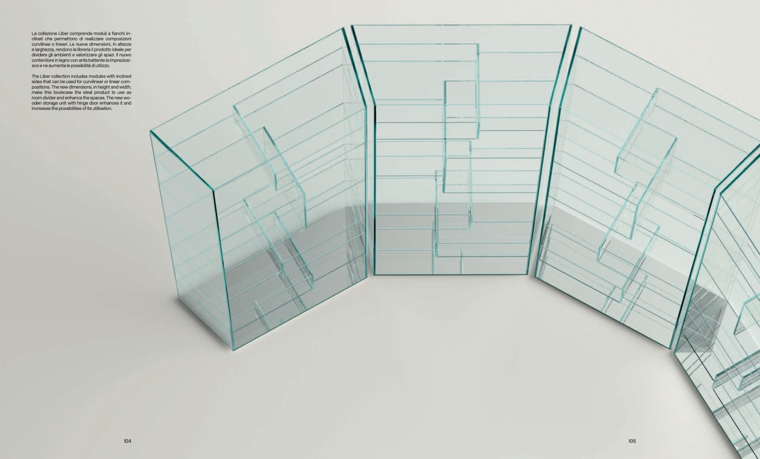 La collezione Liber comprende moduli a fianchi in