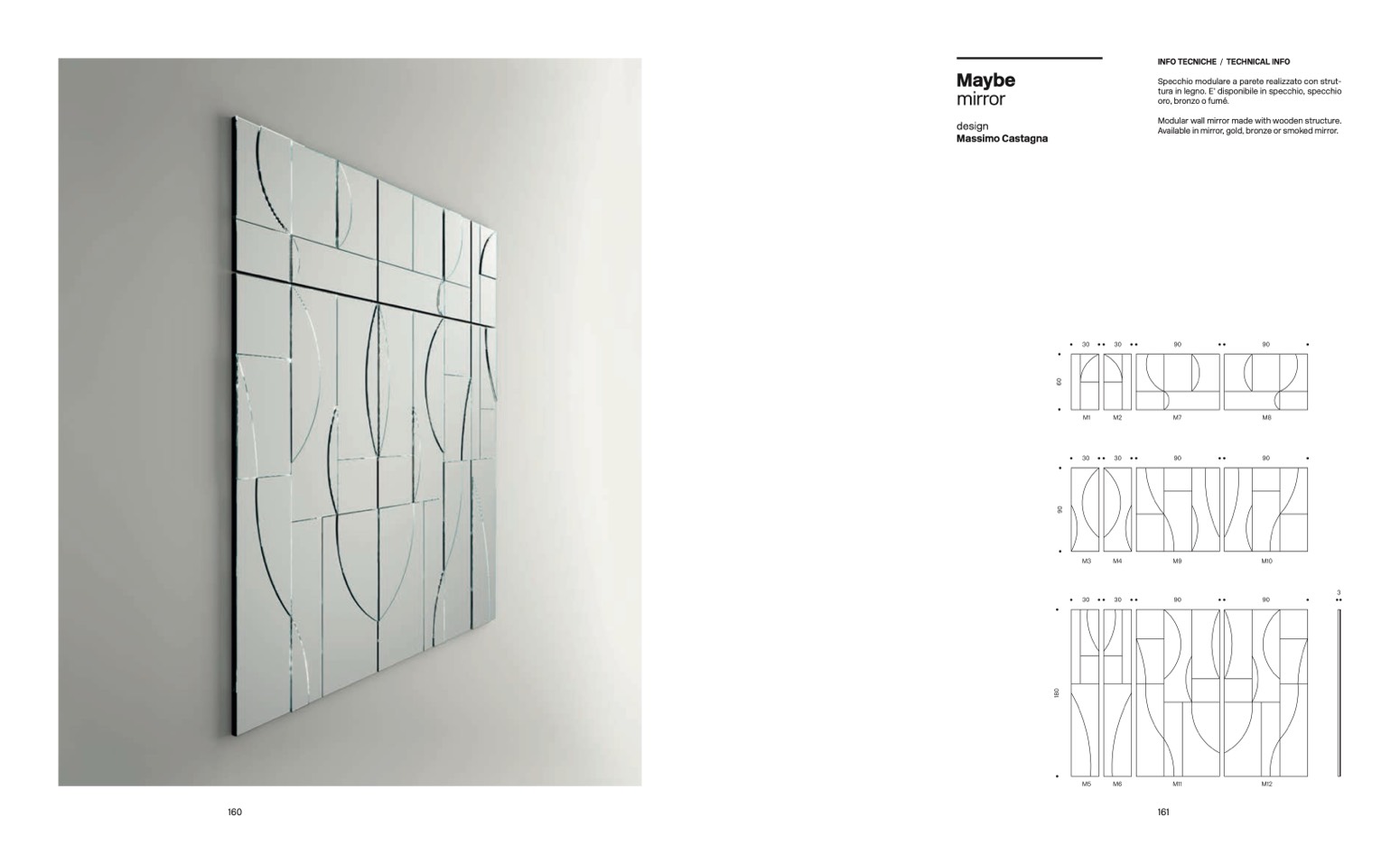 Specchio modulare a parete realizzato con strut-