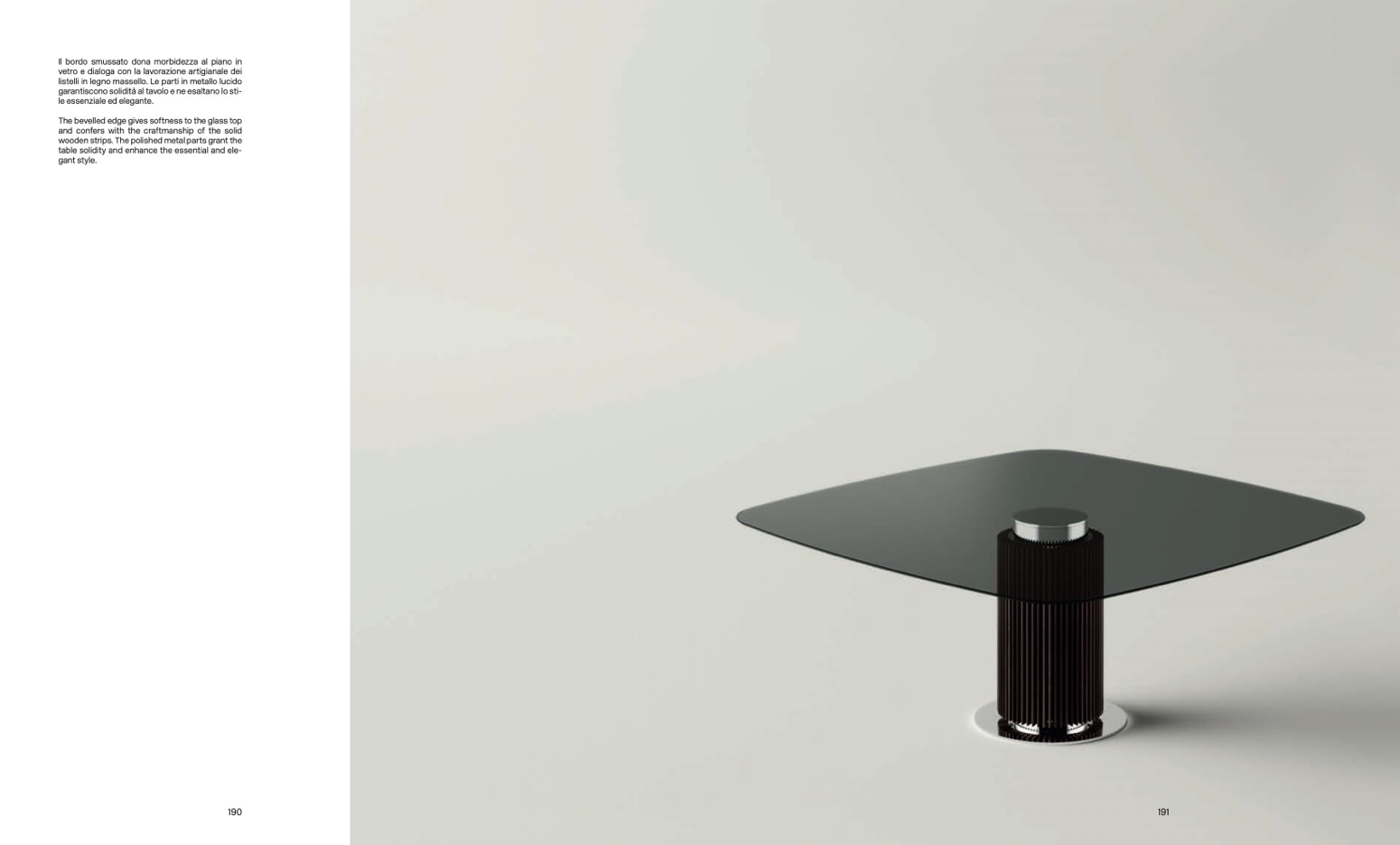 The bevelled edge gives softness to the glass top