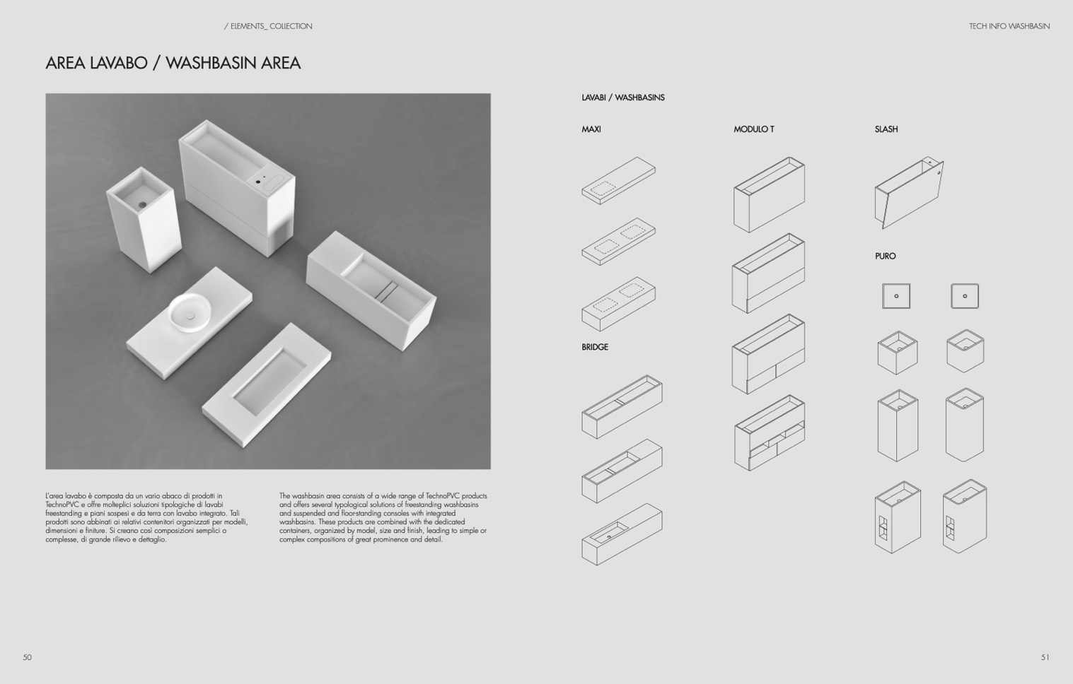 and offers several typological solutions of freestanding washbasins