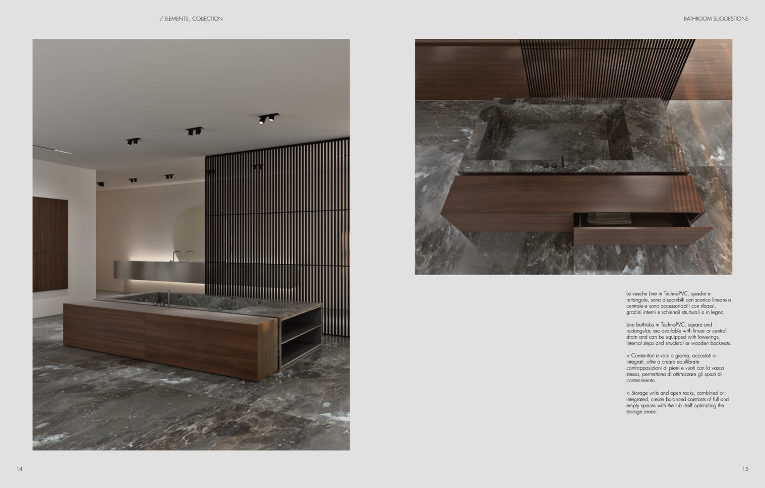 Line bathtubs in TechnoPVC, square and