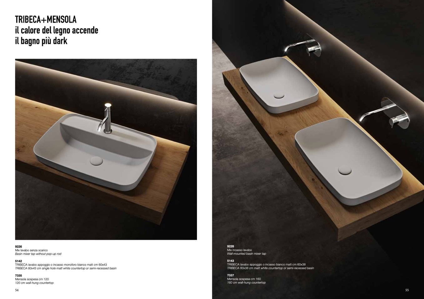 TRIBECA lavabo appoggio o incasso monoforo bianco matt cm 60x43