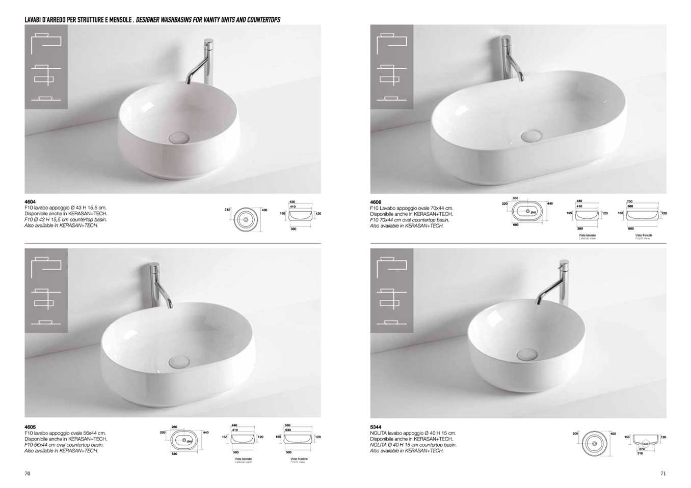4606 “F10” lavabo appoggio ovale cm 70x40