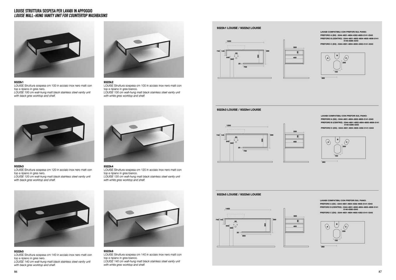 LOUISE 140 cm wall-hung matt black stainless steel vanity unit