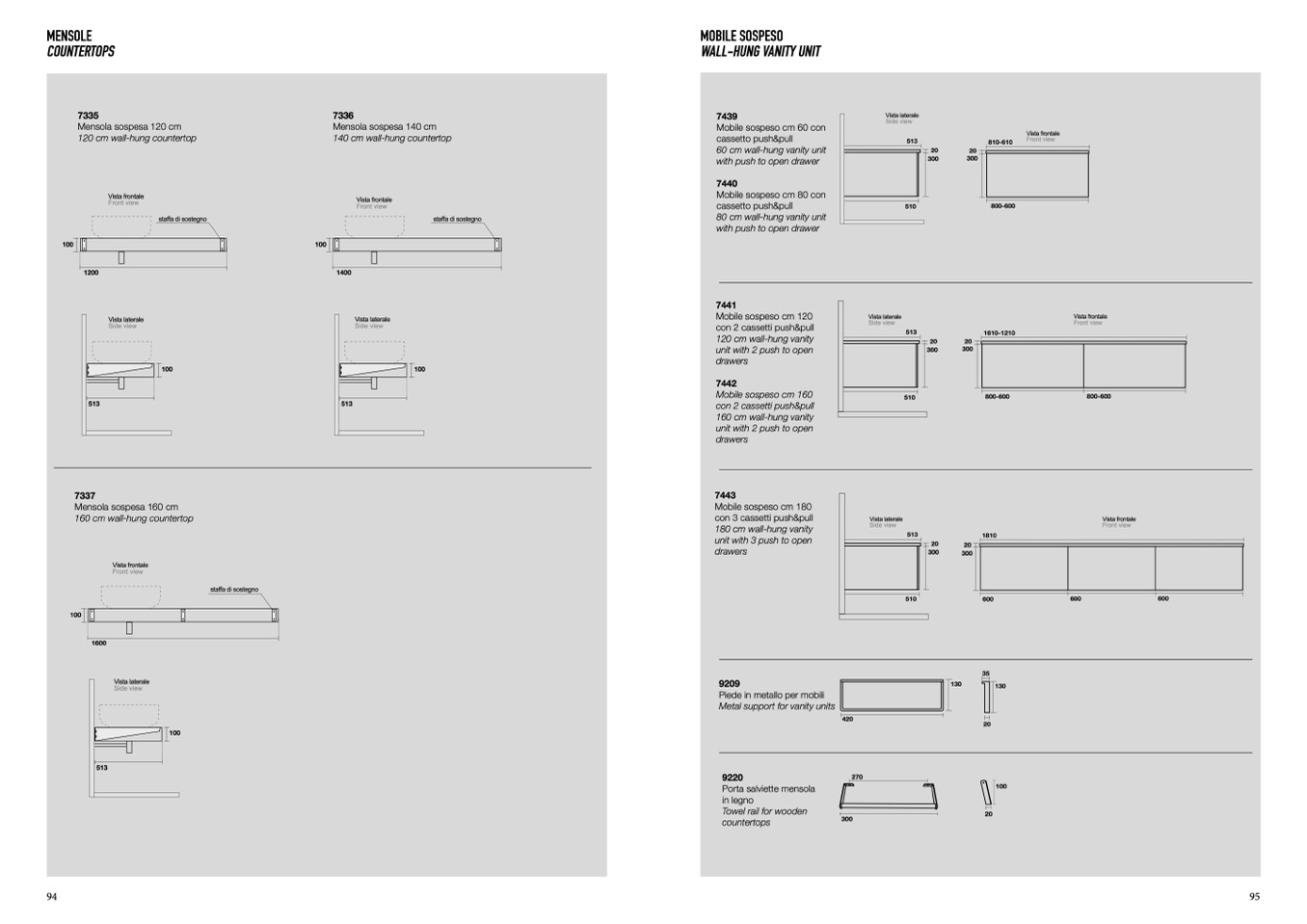 120 cm wall-hung countertop