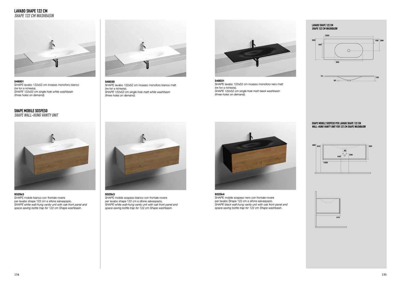 per lavabo Shape 122 cm e sifone salvaspazio.