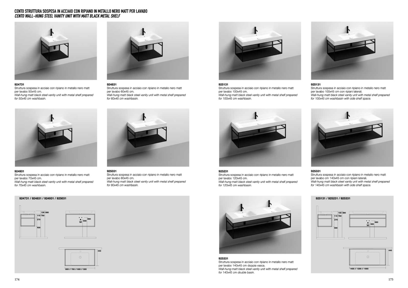 tallo nero matt per lavabo cm 140x45 e lavabo cm 140x45 doppi