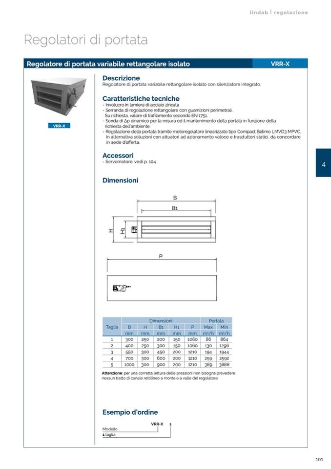 - Serranda di regolazione rettangolare con guarnizioni perimetrali.