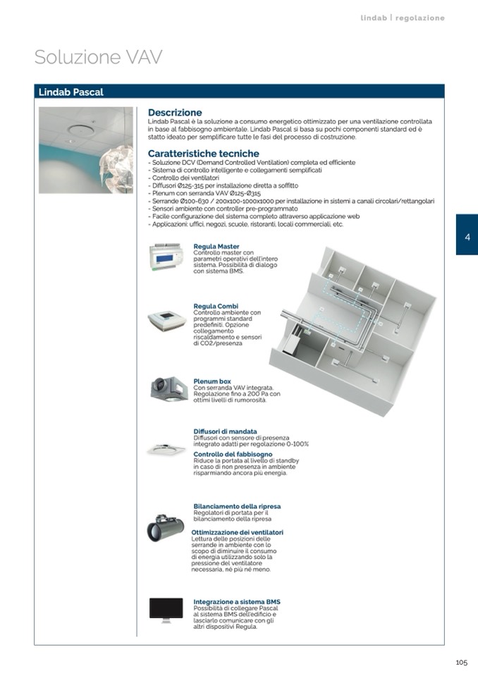 in base al fabbisogno ambientale. Lindab Pascal si basa su pochi componenti standard ed è