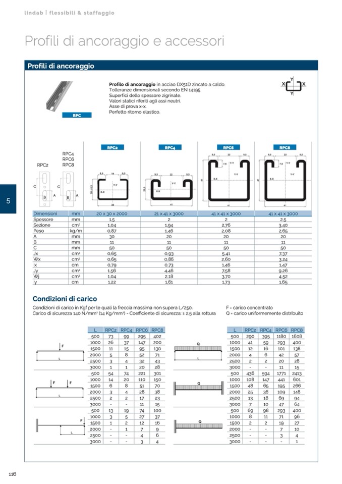 Profilo di ancoraggio in acciao DX51D zincato a caldo.
