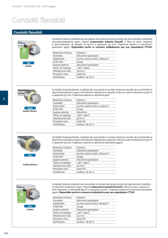e anti-irritazione, di densità 18 kg/m3 e spessore 25 mm. Copertura esterna in alluminio/