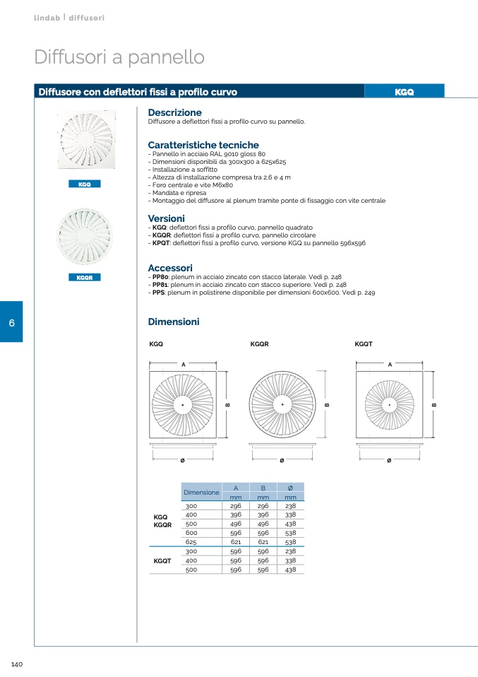 - KPQT: deflettori fissi a profilo curvo, versione KGQ su pannello 596x596