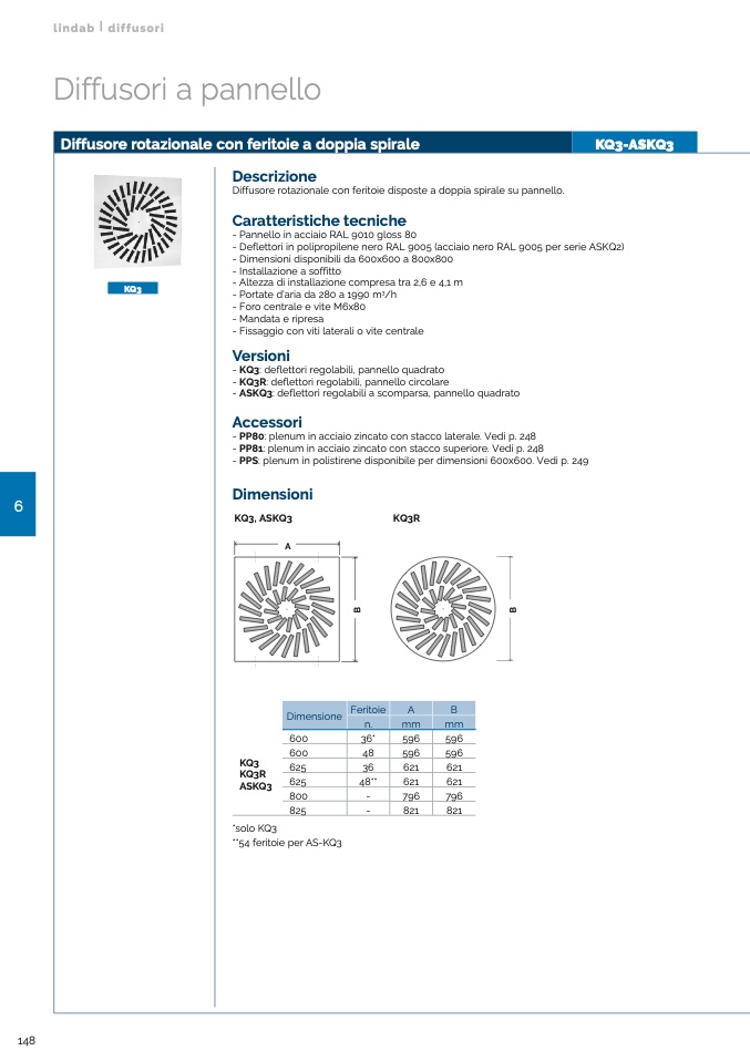 - Deflettori in polipropilene nero RAL 9005 (acciaio nero RAL 9005 per serie ASKQ2)