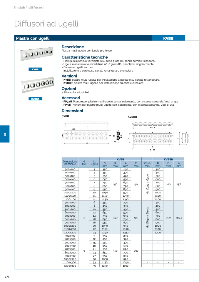 - KVBB: piastra multi-ugello per installazione a parete o su canale rettangolare.
