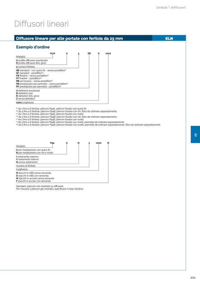 da 1 fino a 6 feritoie, plenum P94A, plenum fissato con quick fix