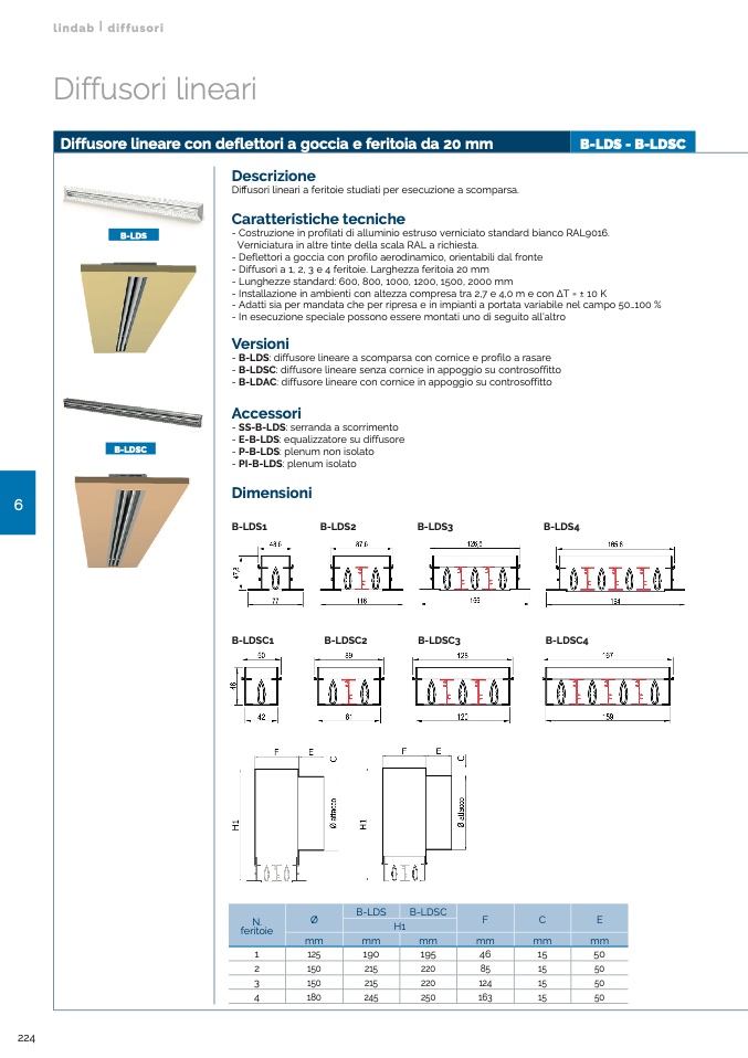 - Diffusori a 1, 2, 3 e 4 feritoie. Larghezza feritoia 20 mm