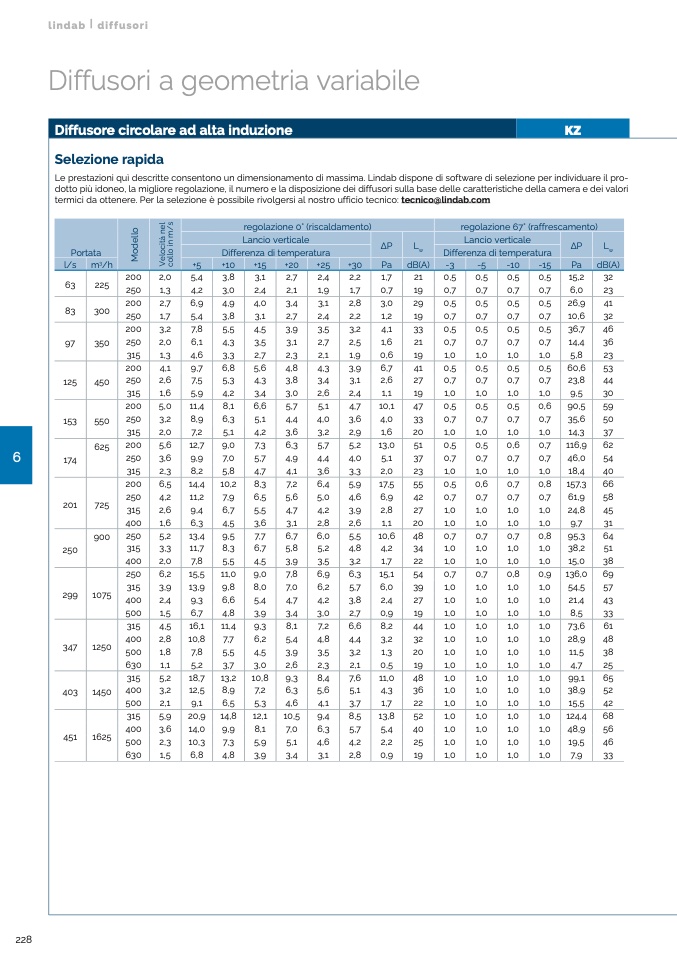 Le prestazioni quì descritte consentono un dimensionamento di massima. Lindab dispone di software di selezione per individuare il pro-