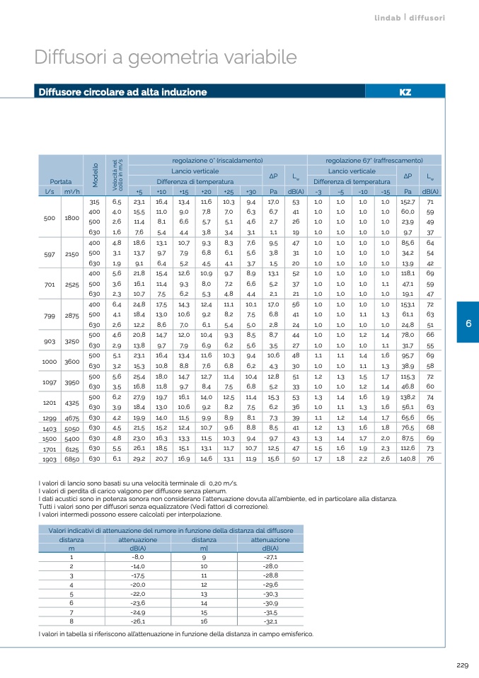 I valori di perdita di carico valgono per diffusore senza plenum.