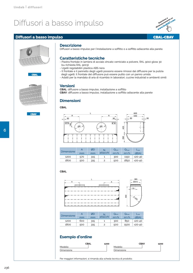 CBAL: diffusore a basso impulso, installazione a soffitto