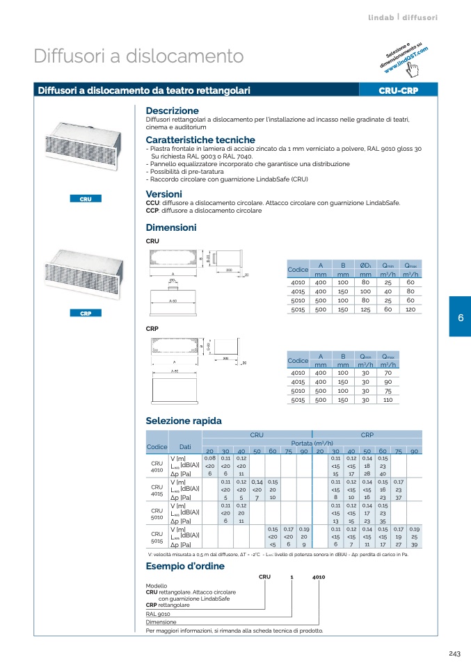 CCU: diffusore a dislocamento circolare. Attacco circolare con guarnizione LindabSafe.