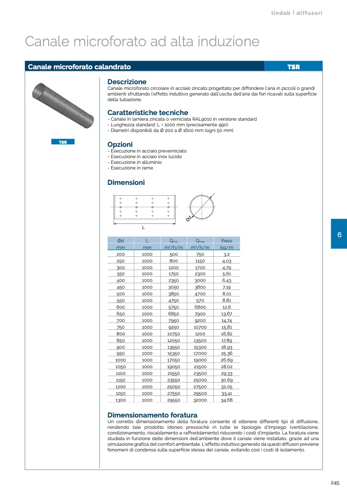 Canale microforato circolare in acciaio zincato progettato per diffondere l’aria in piccoli o grandi