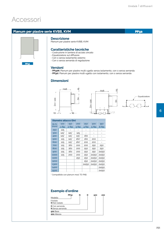 - PP32N: Plenum per piastre multi-ugello senza isolamento, con o senza serranda