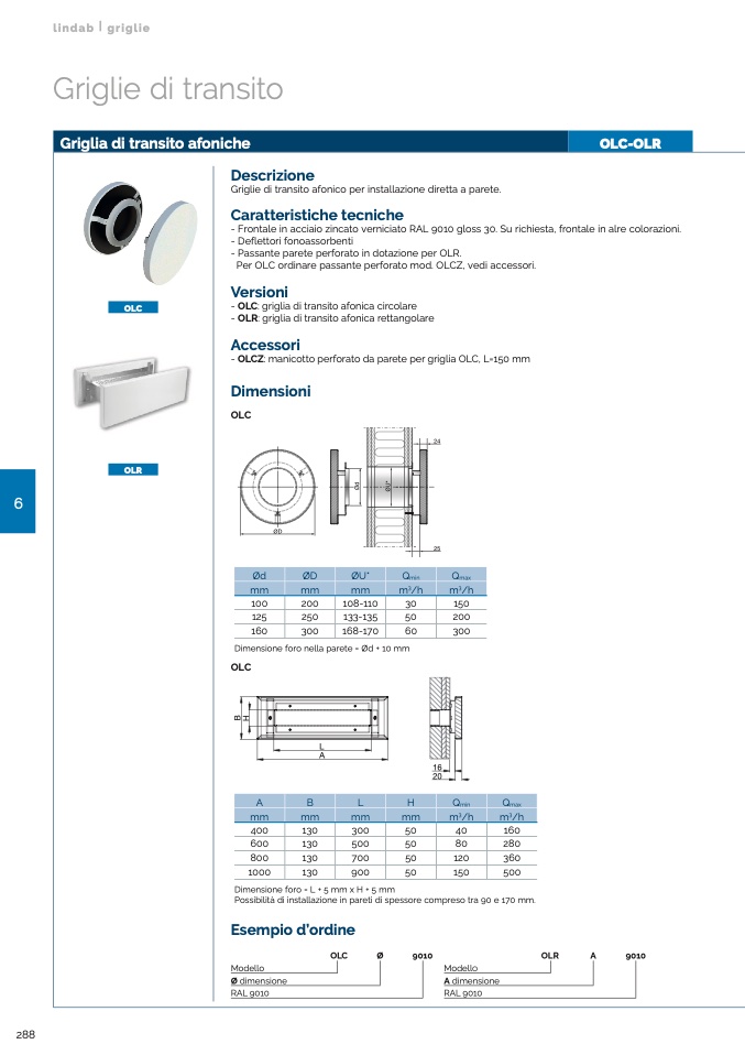 Per OLC ordinare passante perforato mod. OLCZ, vedi accessori.