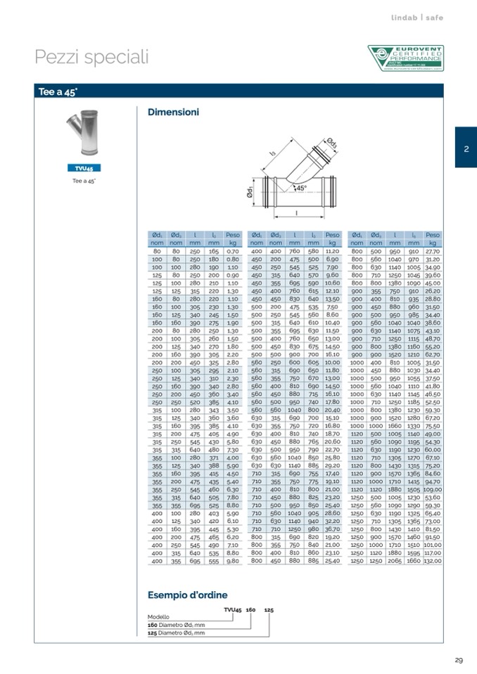 Tee a 45°