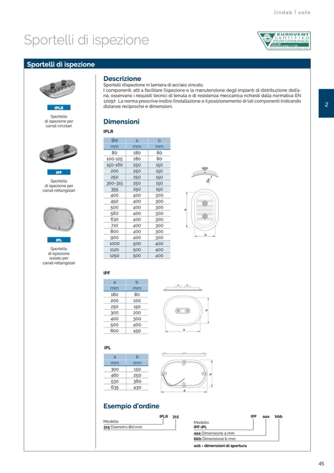 Sportelli d’ispezione in lamiera di acciaio zincato.