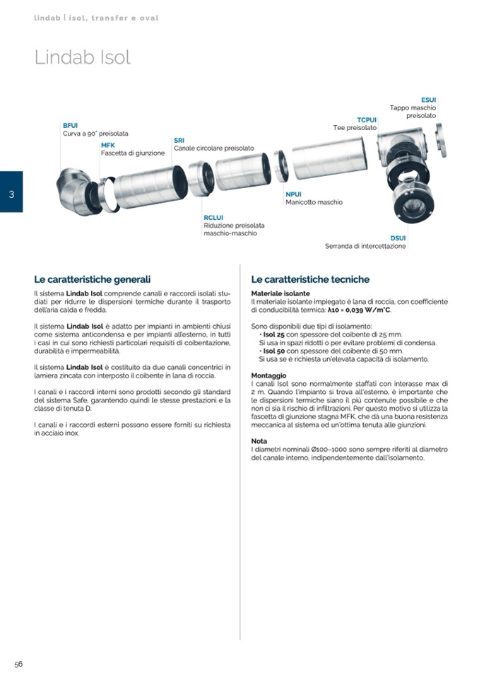 Il sistema Lindab Isol comprende canali e raccordi isolati stu-