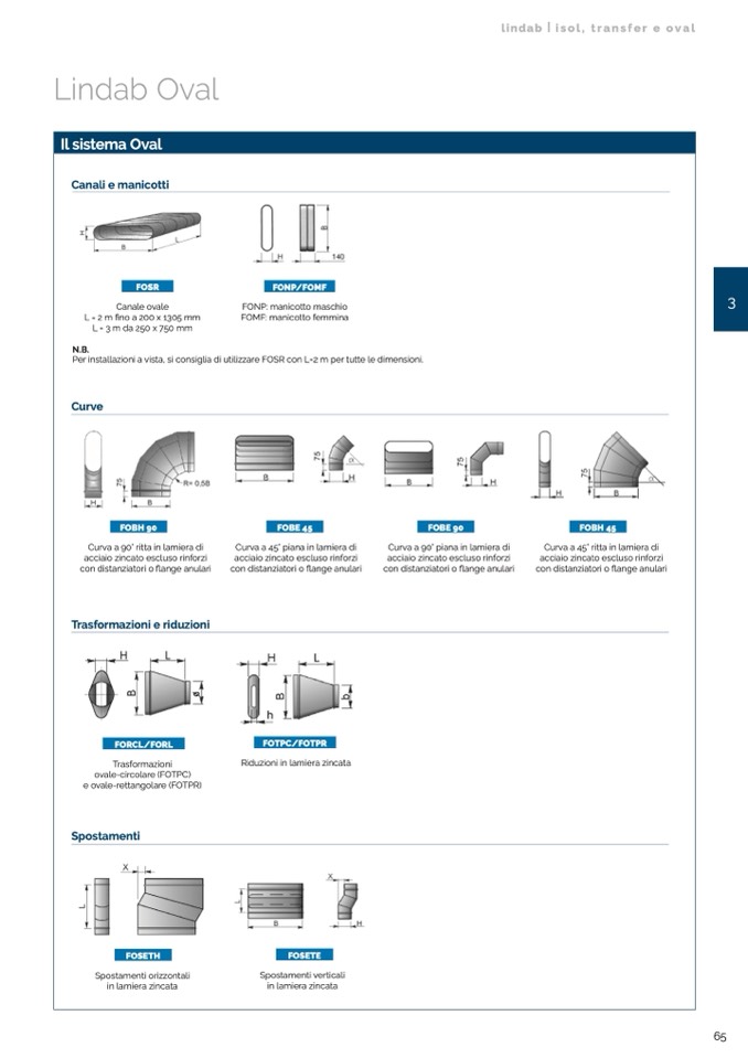 Per installazioni a vista, si consiglia di utilizzare FOSR con L=2 m per tutte le dimensioni.