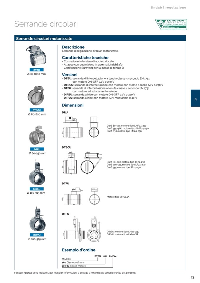 - DTBU: serranda di intercettazione a tenuta classe 4 secondo EN 1751