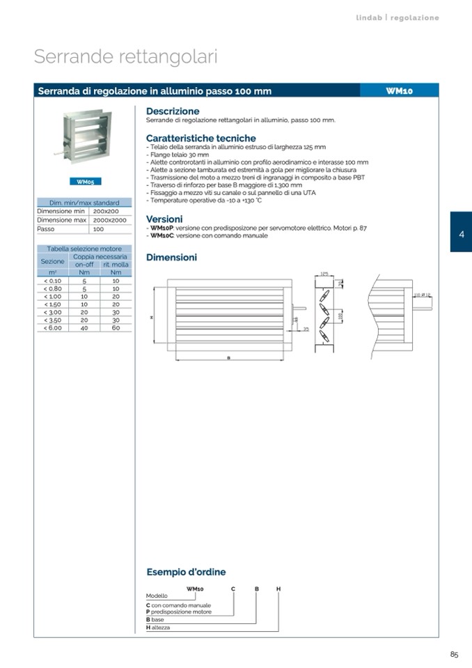 - WM10P: versione con predisposizone per servomotore elettrico. Motori p. 87