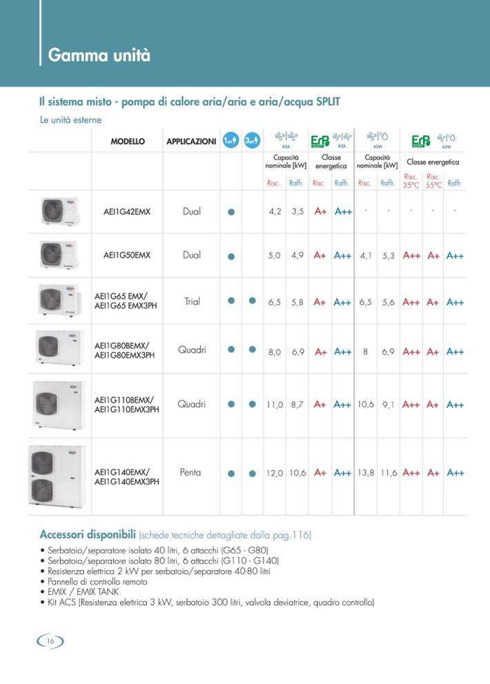 Accessori disponibili (schede tecniche dettagliate dalla pag.116)