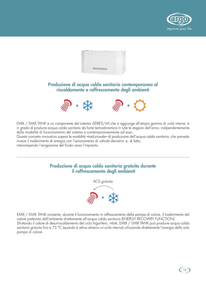 Sfruttando il calore di desurriscaldamento del ciclo frigorifero, infatti, EMIX / EMIX TANK può produrre acqua calda