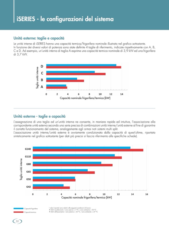 L’associazione unità interne/unità esterne è ovviamente condizionata dalla capacità di quest’ultime, riportata