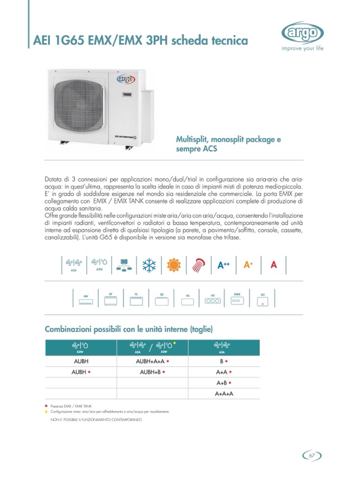 canalizzabili). L'unità G65 è disponibile in versione sia monofase che trifase.