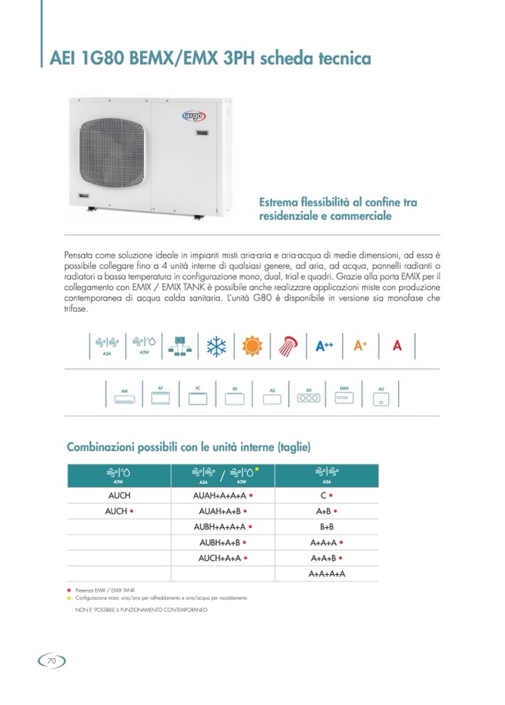 contemporanea di acqua calda sanitaria. L’unità G80 è disponibile in versione sia monofase che