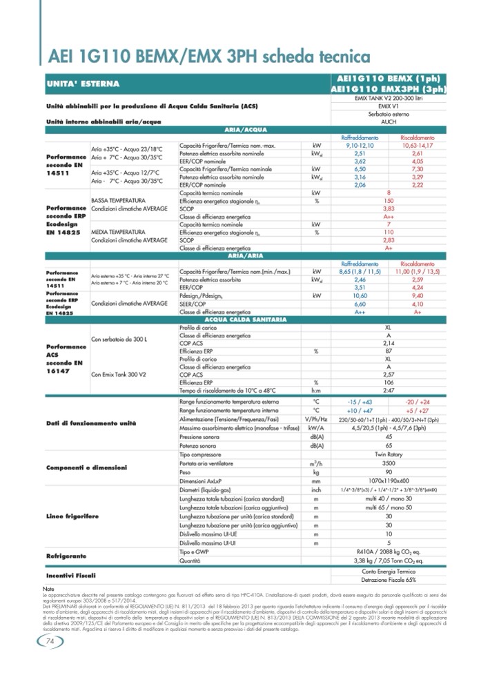 Le apparecchiature descritte nel presente catalogo contengono gas fluorurati ad effetto serra di tipo HFC-410A. L’installazione di questi prodotti, dovrà essere eseguita da personale qualificato ai sensi dei