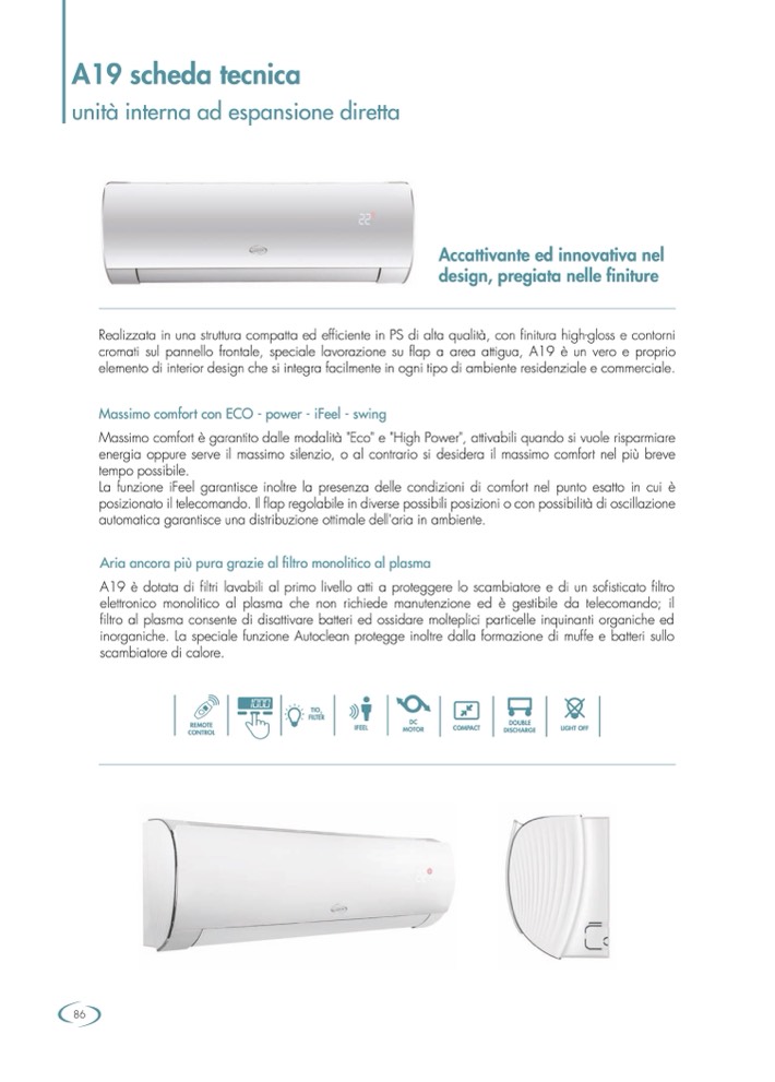 A19 è dotata di filtri lavabili al primo livello atti a proteggere lo scambiatore e di un sofisticato filtro