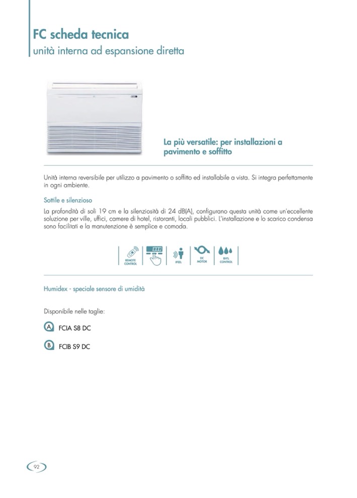 Unità interna reversibile per utilizzo a pavimento o soffitto ed installabile a vista. Si integra perfettamente