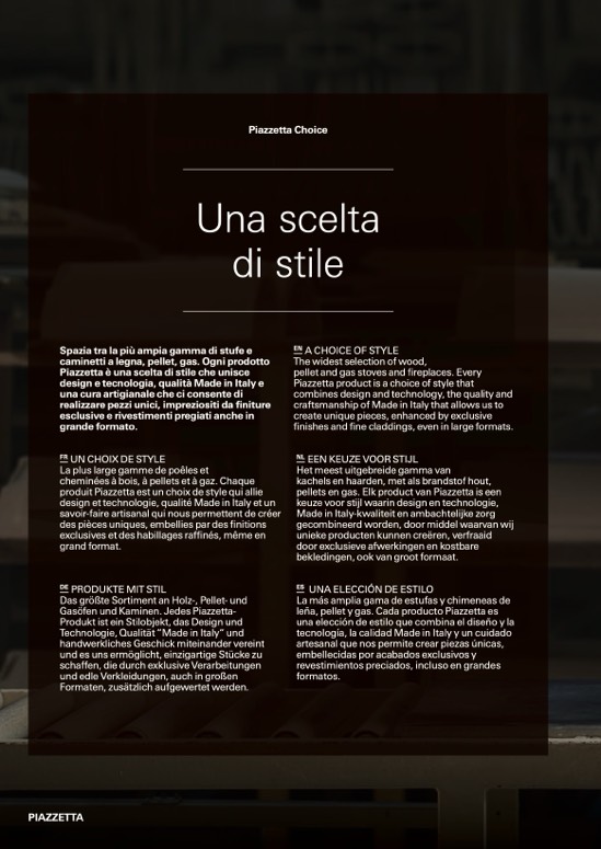 leña, pellet y gas. Cada producto Piazzetta es